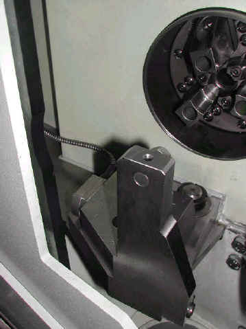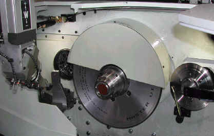 Workpiece - Hardened steel Workhead - Universal sliding with Forward 130mm chuck, 10 degree approach Tailstock - Flat face stop Grinding Wheel - 400mm x 30mm vitrified bond CBN, auto balance Dressing - Diamond disc Gauging - None Grinding fluid - Neat oil, mag separator + twin drum centrifuge, heat exchanger for chilled water Presentation - Pallets (2) 5 x 4 Handling - Twin grippers @ 45 deg, 180deg indexing Grind Time - 22 sec Load time - 8 sec